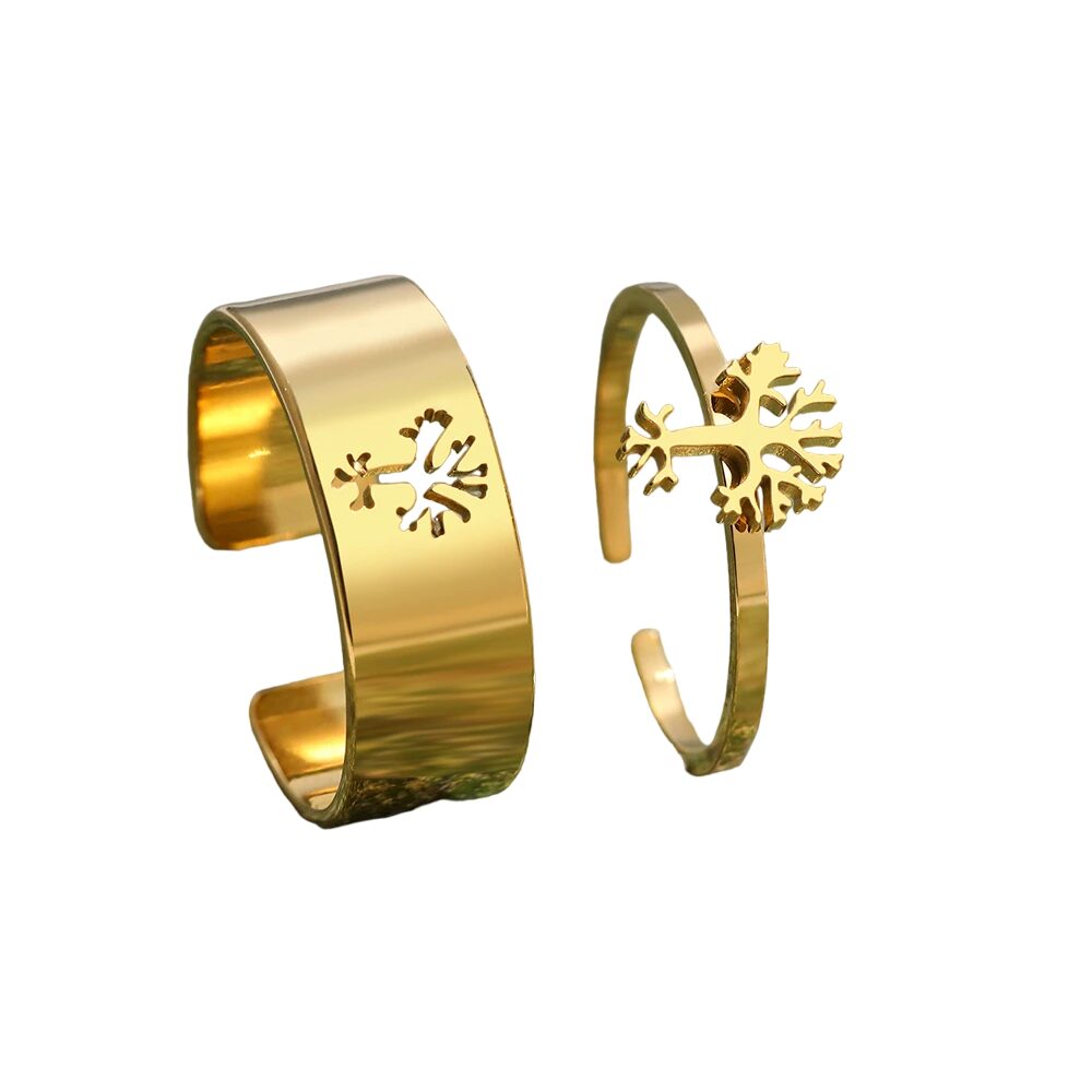 Leur finition dorée lumineuse rehausse leur aspect raffiné, tandis que leur matériau hypoallergénique garantit une expérience de port sans irritation. Offrez-les comme cadeau à votre bien-aimé(e), vos amis proches ou des membres de votre famille pour témoigner de votre affection et de votre lien éternel. Ces bagues sont également un excellent choix pour ceux qui apprécient le symbolisme et la beauté intemporelle du motif de l’arbre de vie.