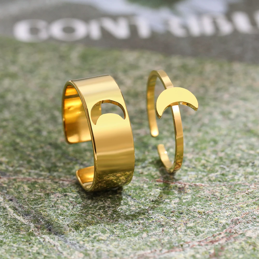 Ces magnifiques bagues couple assorties lune or sont le symbole parfait de votre amour éternel. Fabriquées en acier inoxydable doré, elles allient élégance et durabilité. Leur design unique en forme de lune apporte une touche de mystère et de romantisme, faisant de ces bagues un choix idéal pour célébrer vos moments spéciaux. L’acier inoxydable garantit qu’elles ne terniront pas et resteront brillantes, résistant à l’eau et aux allergies.