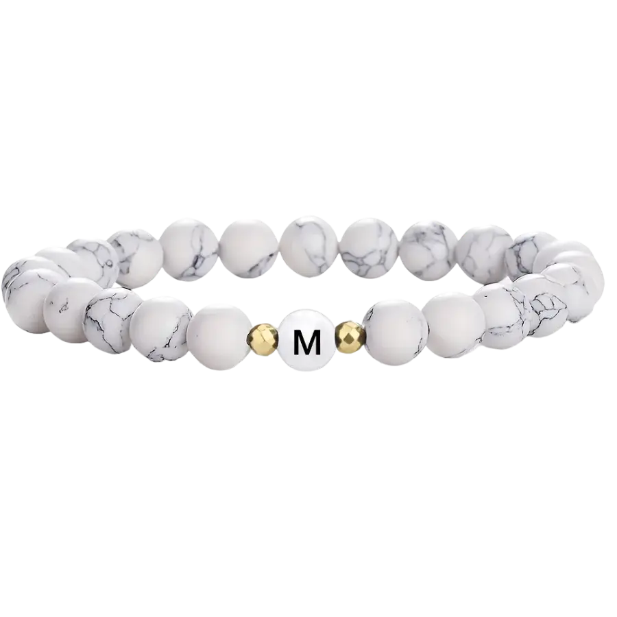 Ce bracelet couple personnalisé avec des perles blanches et dorées incarne l’élégance et la simplicité. Confectionné à partir de pierres naturelles de qualité supérieure, il est orné de touches dorées qui apportent une note de sophistication. Personnalisable avec vos initiales, il est le symbole parfait de l’union et de la complicité entre deux âmes. Son design élastique le rend confortable à porter au quotidien, tout en étant idéal pour les occasions spéciales.