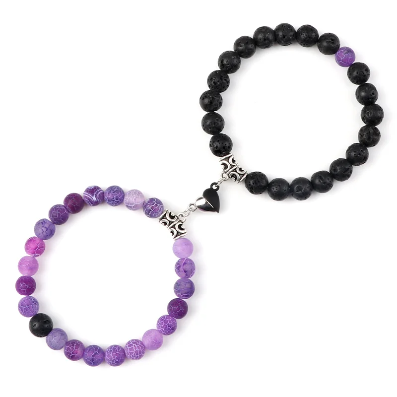 Bracelets couple perles aimantés noir et violet